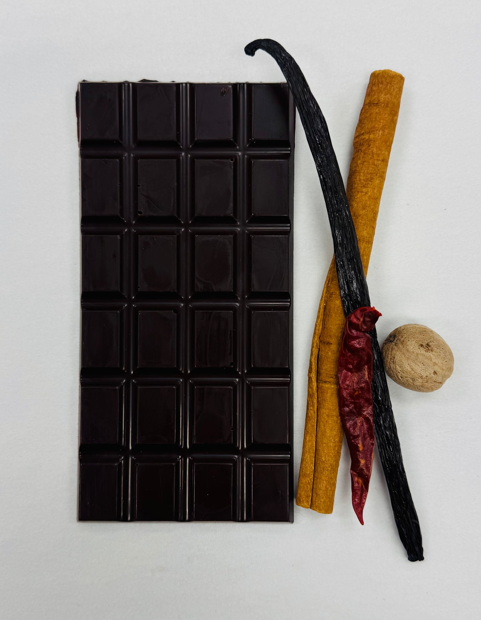 Ingredients - Organic Cacao beans, organic coconut flower nectar, organic cacao butter, cinnamon, nutmeg, chilies, vanilla bean